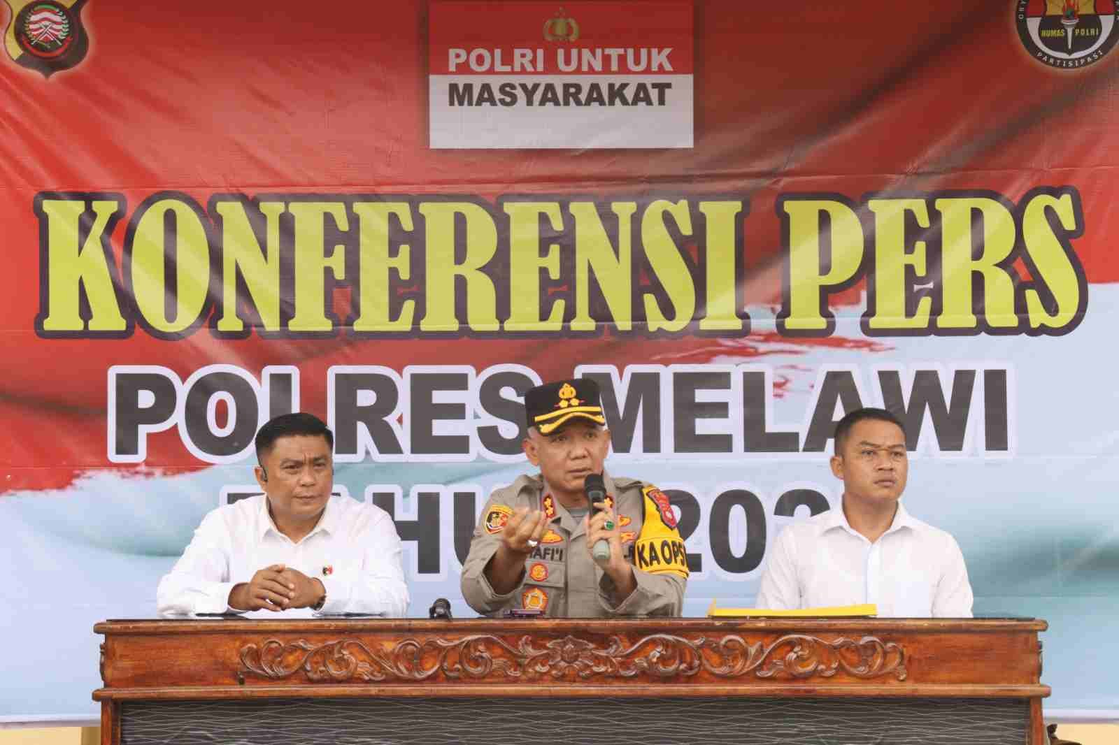 Kapolres Melawi AKBP M. Syafi’i, yang memimpin press release didampingi Kasat Reskrim AKP Ambril dan KBO Sat Narkoba Ipda Ahmad Nuryanto.