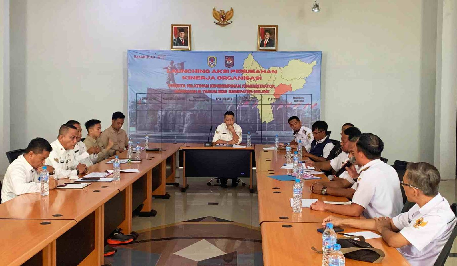 Rapat berlangsung di Convention Hall Kantor Bupati Melawi, dipimpin Sekretaris Daerah (Sekda) Melawi Paulus, dihadiri Asisten Imansyah dan Joko Wahyono, Kadis Kumdag Halma Trisno, Camat Nanga Pinoh Hendra Permana, Tim Satgas dan sejumlah perwakilan dari instansi terkait