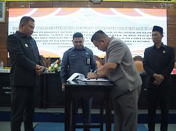 Usai penyampaian pendapat akhir seluruh fraksi, kemudian paripurna pun dilanjutkan dengan penandatanganan berita acara persetujuan bersama antara Pimpinan DPRD dan Bupati Melawi.