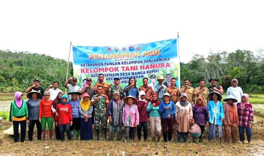 Kepala Desa Nanga Kompi, Embang, bersama kelompok tani melaksanakan penanaman padi