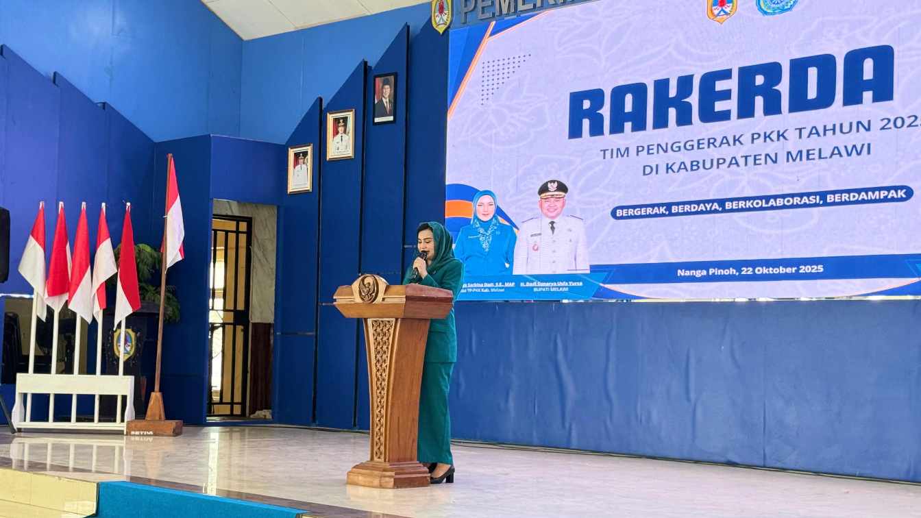 Hal tersebut disampaikan Raisya Sarbina, saat memimpin Rapat Kerja Daerah (Rakerda) PKK Ke- X Kabupaten Melawi Tahun 2025, berlangsung di Pendopo Rumah Jabatan Kabupaten Melawi, Rabu (22/10/2025).
