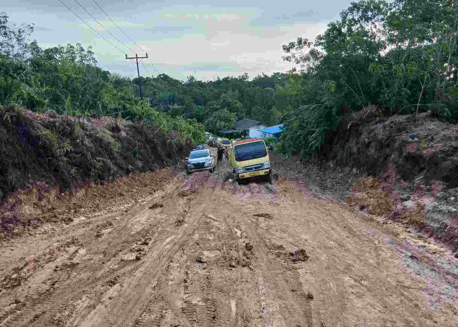 Infrastruktur dasar berstatus jalan kabupaten tersebut berubah menjadi kubangan lumpur akibat curah hujan tinggi yang terjadi dalam beberapa hari terakhir. Kondisi ini menghambat aktivitas masyarakat, baik untuk keperluan ekonomi, pendidikan, maupun akses pelayanan dasar.