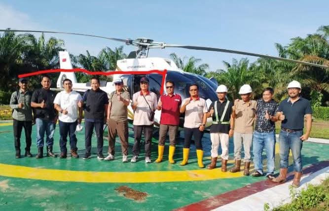 Momen foto bersama di area helipad PT CMA, sebelum penerbangan menuju Kubu Raya (foto istimewa)